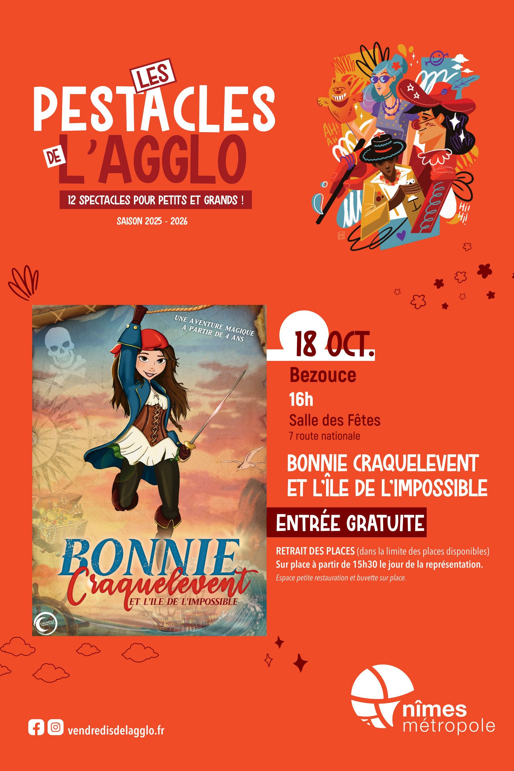Les Vendredis de l’Agglo sont des soirées culturelles gratuites organisées chaque année dans les communes de Nîmes Métropole, avec des spectacles variés allant du théâtre à la musique en passant par la magie et l’humour.